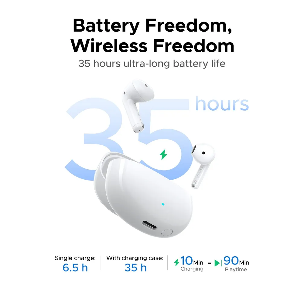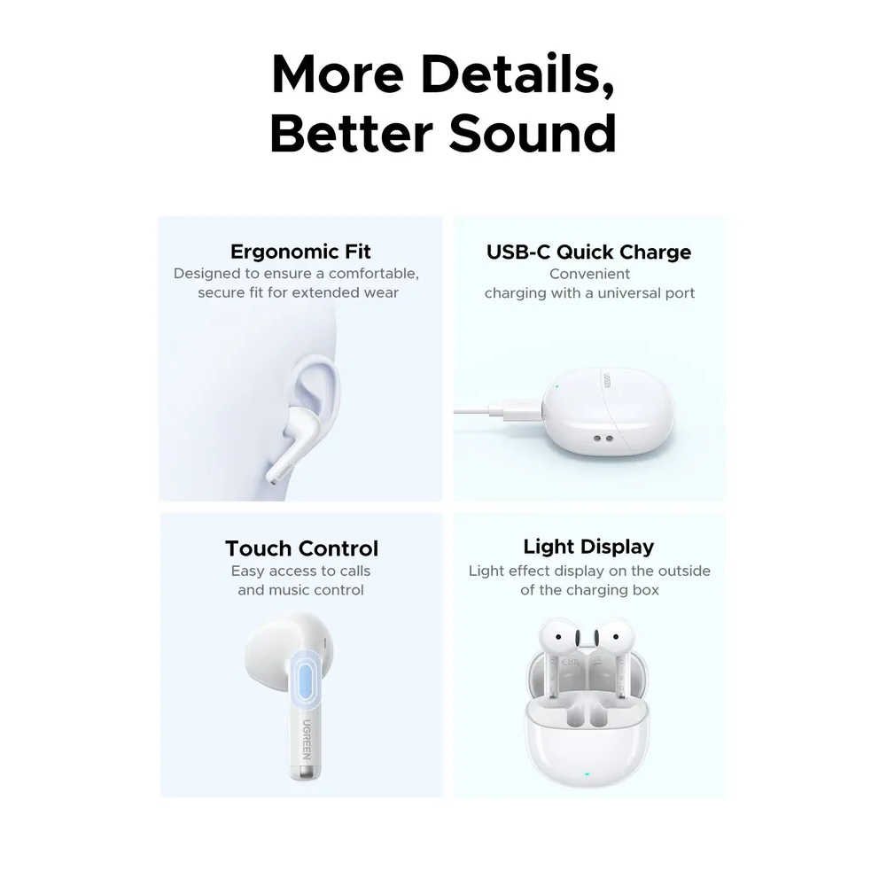 Наушники UGREEN WS217 (65876) LightBuds Bluetooth 6.0 Wireless ENC Earphone White