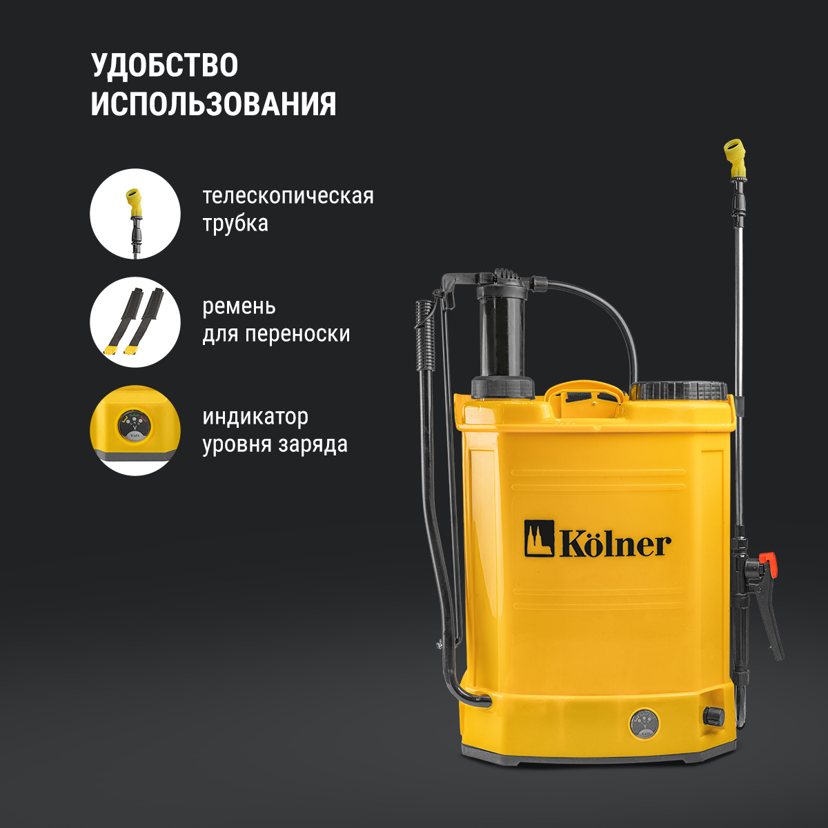 Опрыскиватель аккумуляторный Kolner KCSG 16/12ВРH-SLA, встроенный аккумулятор