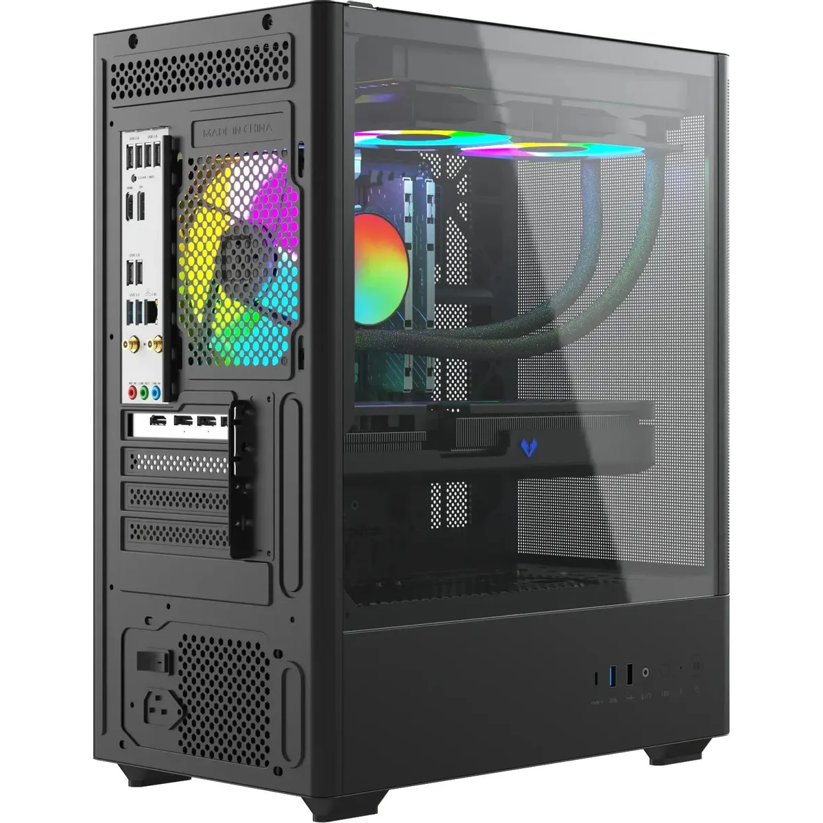 подсветка, прозрачная боковая панель, сетчатая передняя панель (Mesh)
