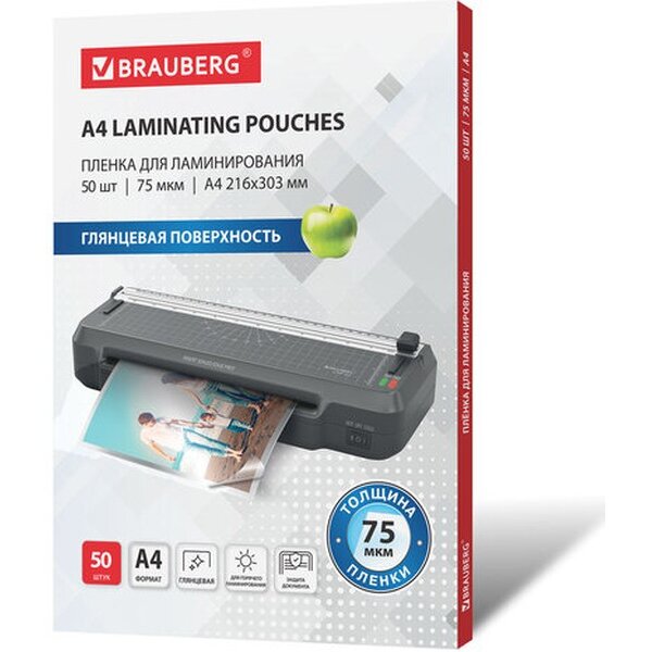 Пленки-заготовки для ламинирования BRAUBERG 533112 А4 75мкм 50шт