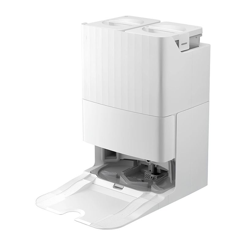 заправка робота чистой водой, зарядка, опорожнение пылесборника робота, очистка ткани для влажной уборки горячей водой, сушка ткани для влажной уборки