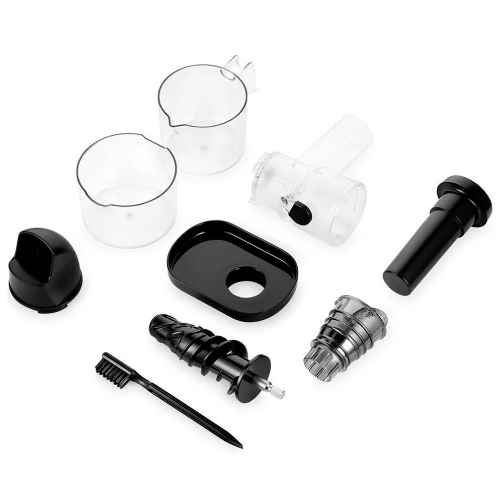 Соковыжималка разбирается за считанные секунды. Все съёмные части легко моются. А в комплекте имеется удобная щёточка для удаления остатков мякоти из отверстий сетки фильтра.