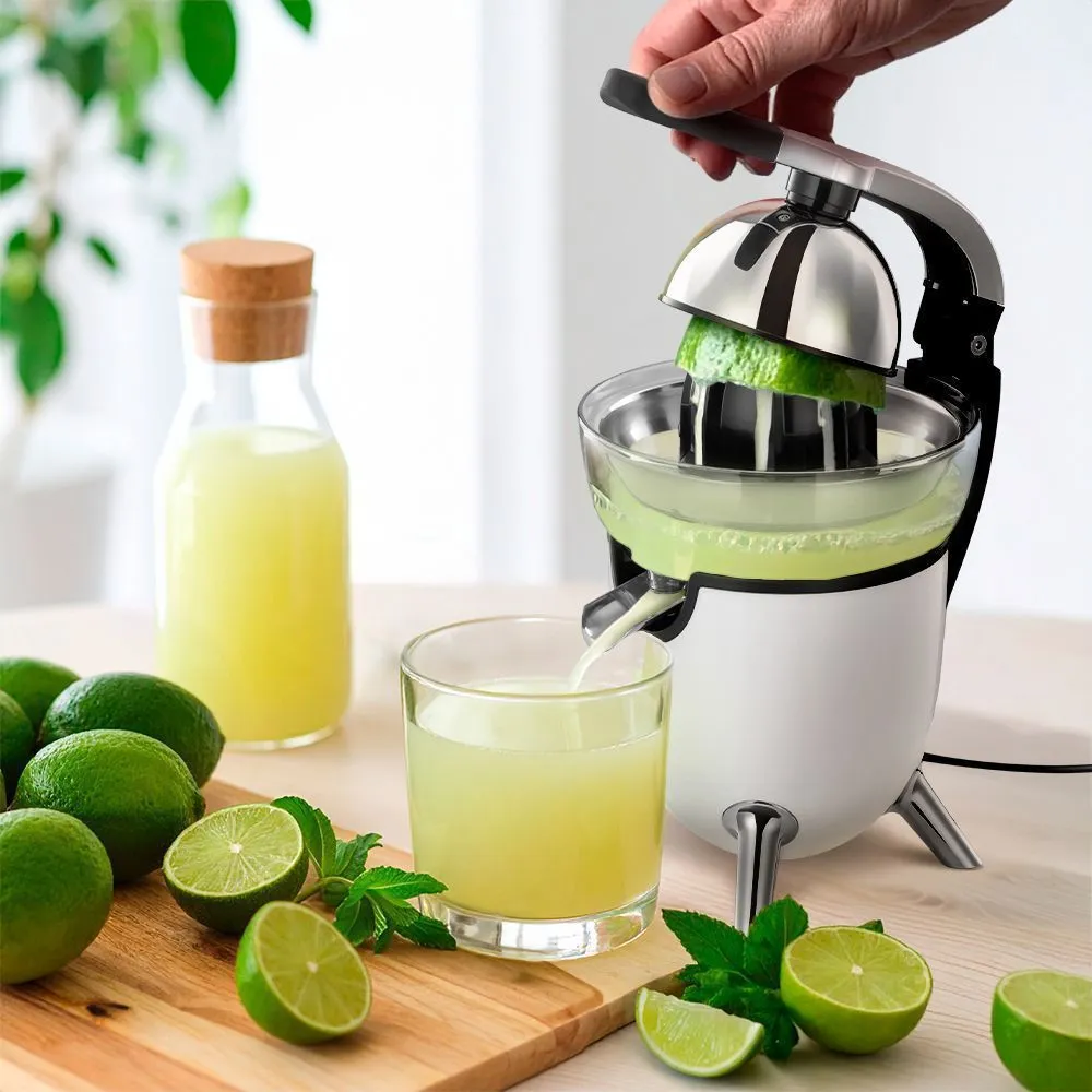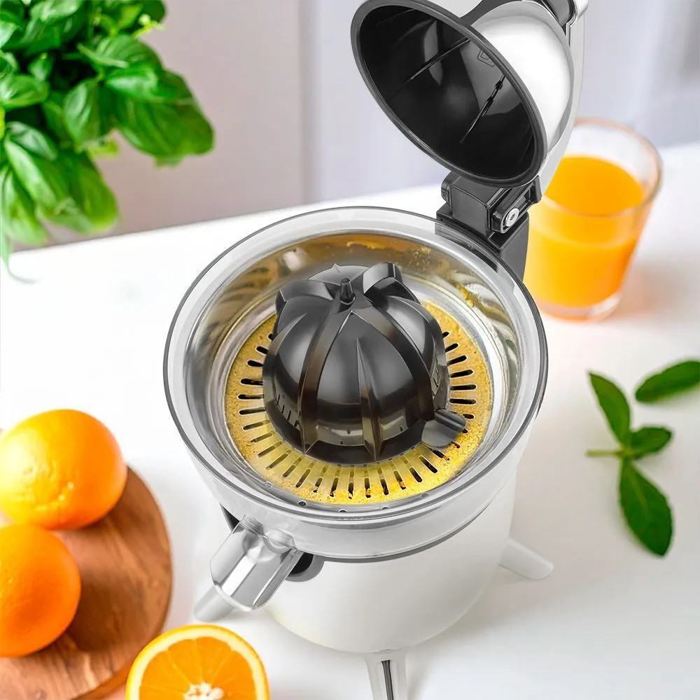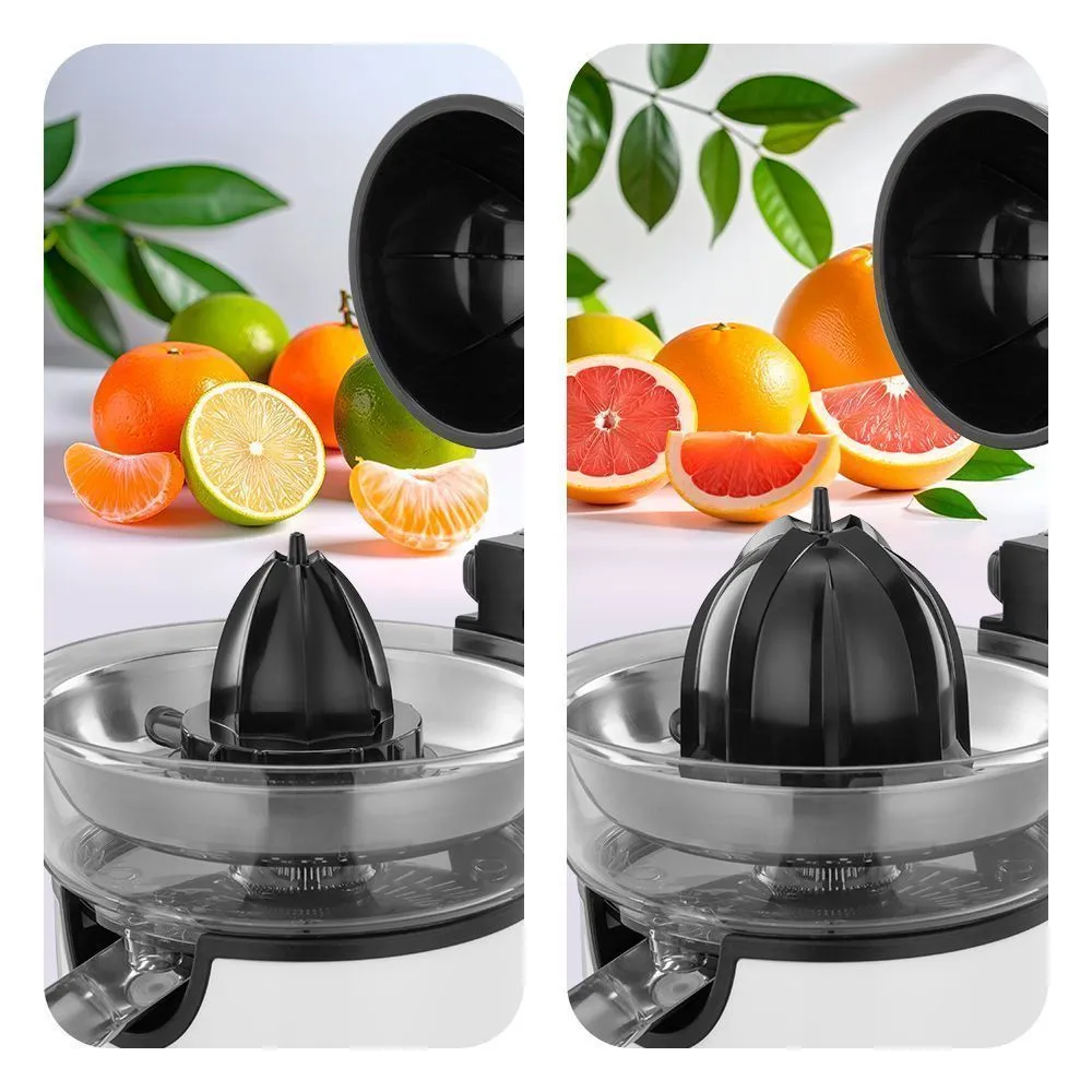 В комплекте с соковыжималкой идут два конуса: маленький и большой. Они позволяют быстро выжать сок из цитрусовых, сохраняя полезные вещества. Маленький конус подходит для лимонов и лаймов, большой — для апельсинов и грейпфрутов