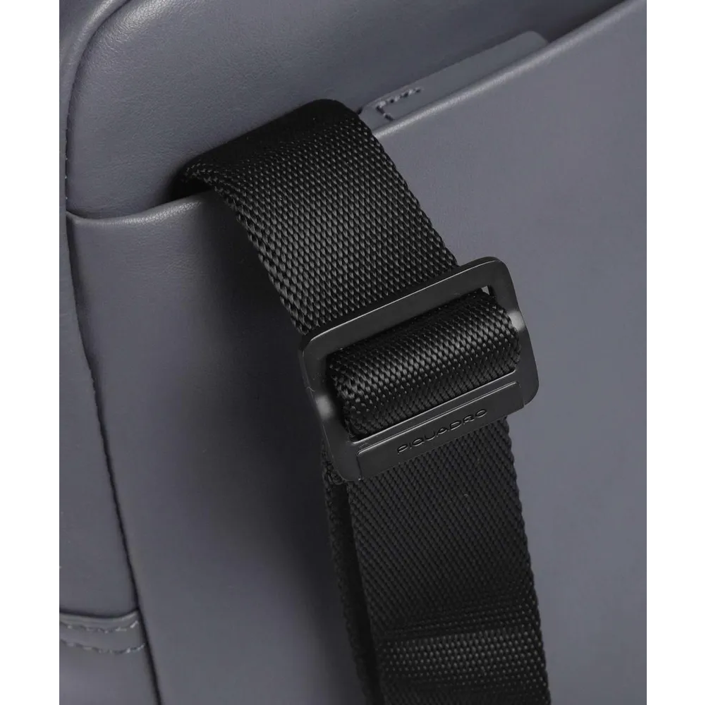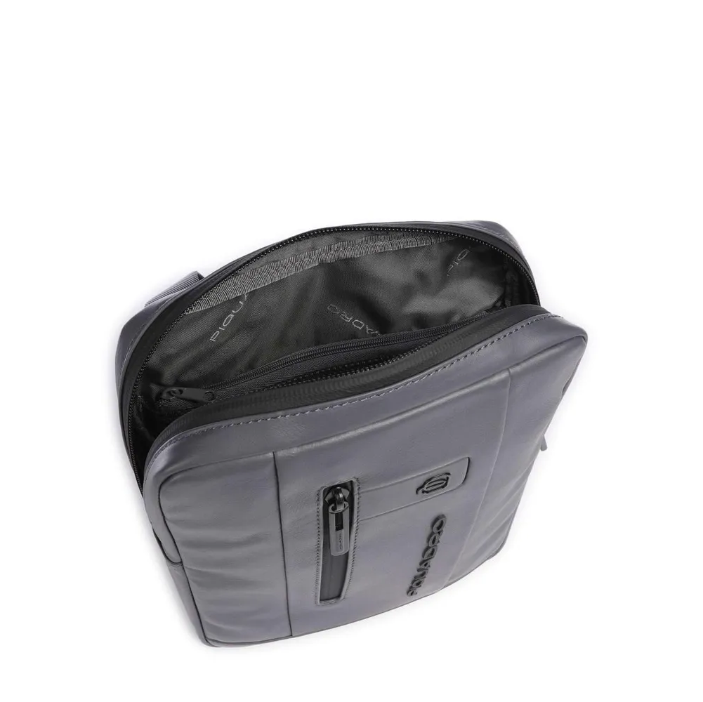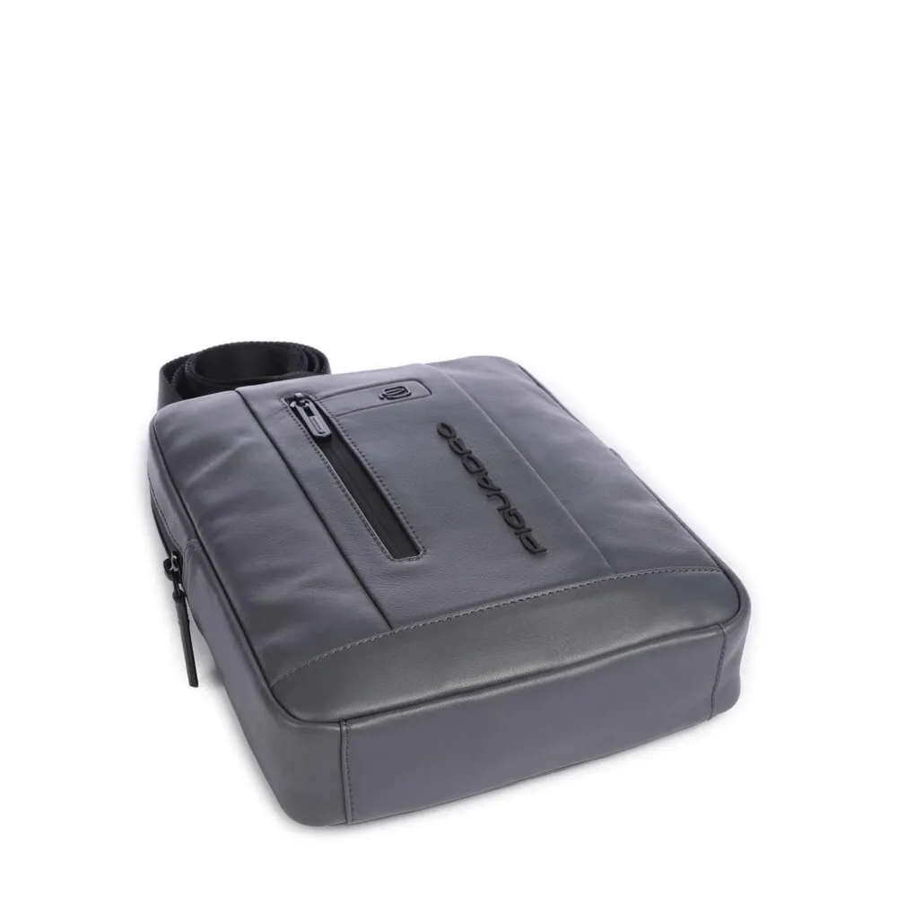 Кожаная сумка через плечо из новой коллекции Piquadro Urban. Сумка изготовлена из гладкой телячьей кожи с использованием черненой матовой фурнитуры. Имеет одно отделение с карманом для 10,5 дюймового планшета, а также отсек для телефона. На передней части расположен вертикальный карман на молнии. Это одна из самых популярных моделей сумок через плечо, оптимальные размеры сумки с удобством позволяют использовать её каждый день для переноски ключей, кошелька, водительских прав и прочих важных вещей.