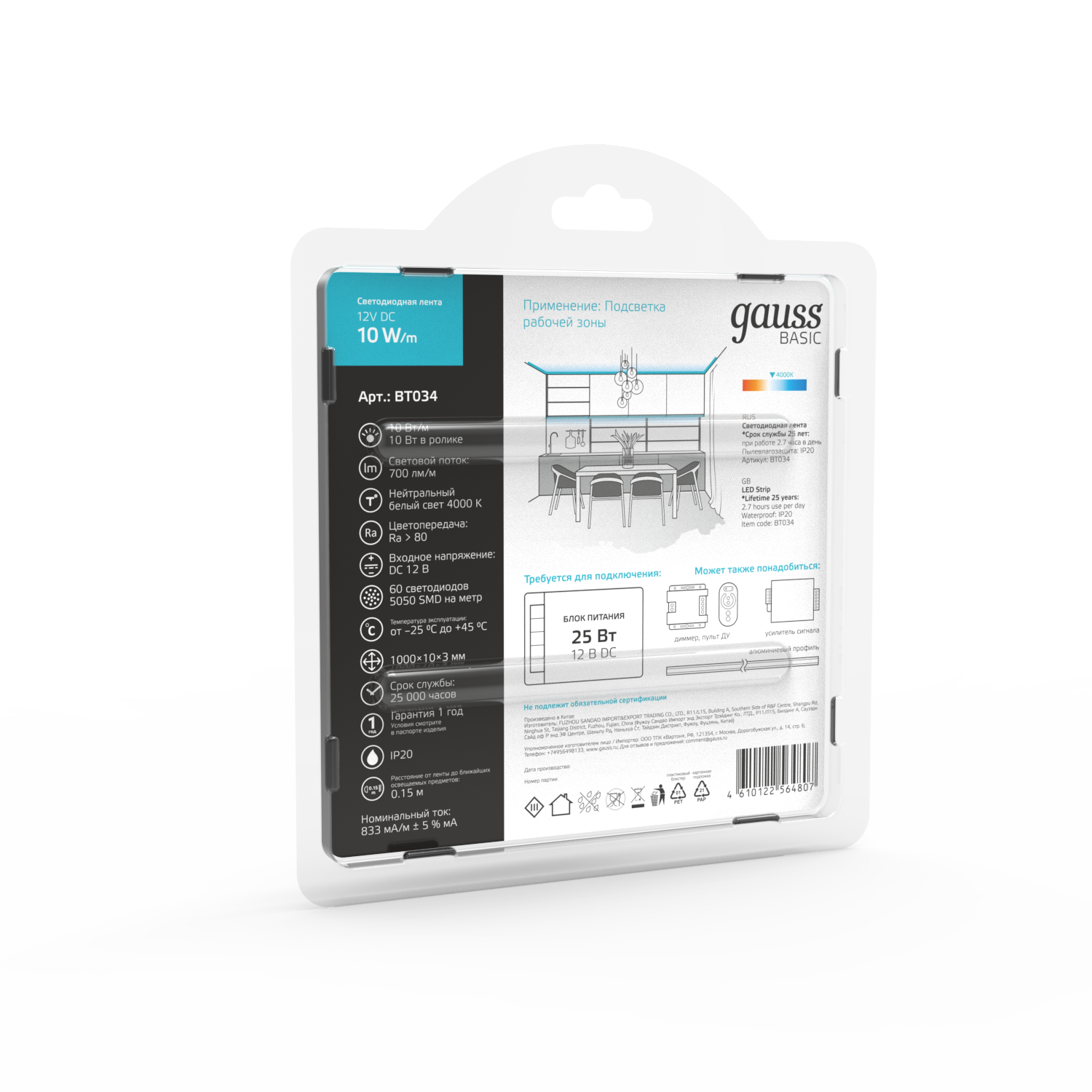Светодиодная лента GAUSS Basic BT034 10Вт, 1м