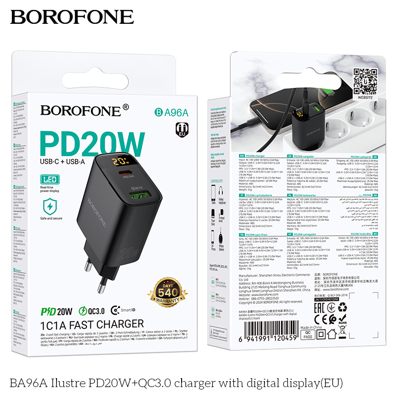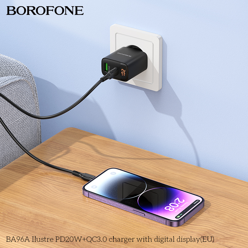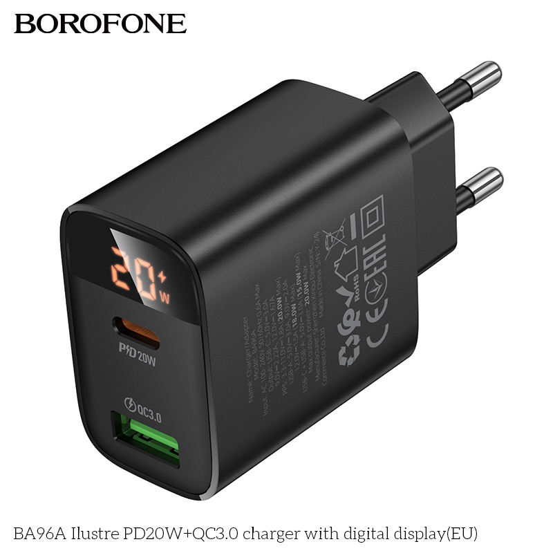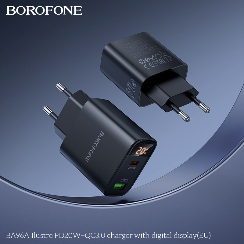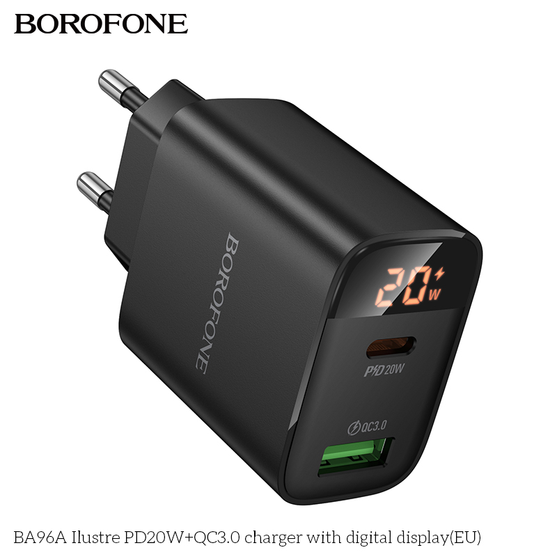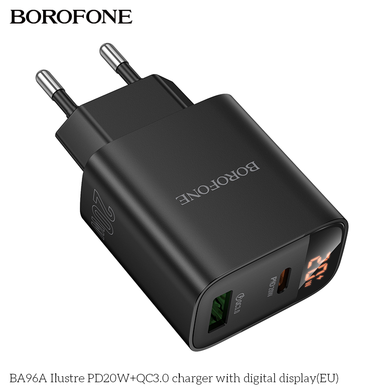 СЗУ BOROFONE BA96A Ilustre PD20W+QC3.0 with digital display EU черный