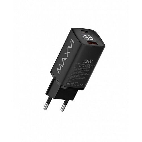 СЗУ Maxvi A402PD LED 33W, 1xUSB-A, 1xUSB-C, black