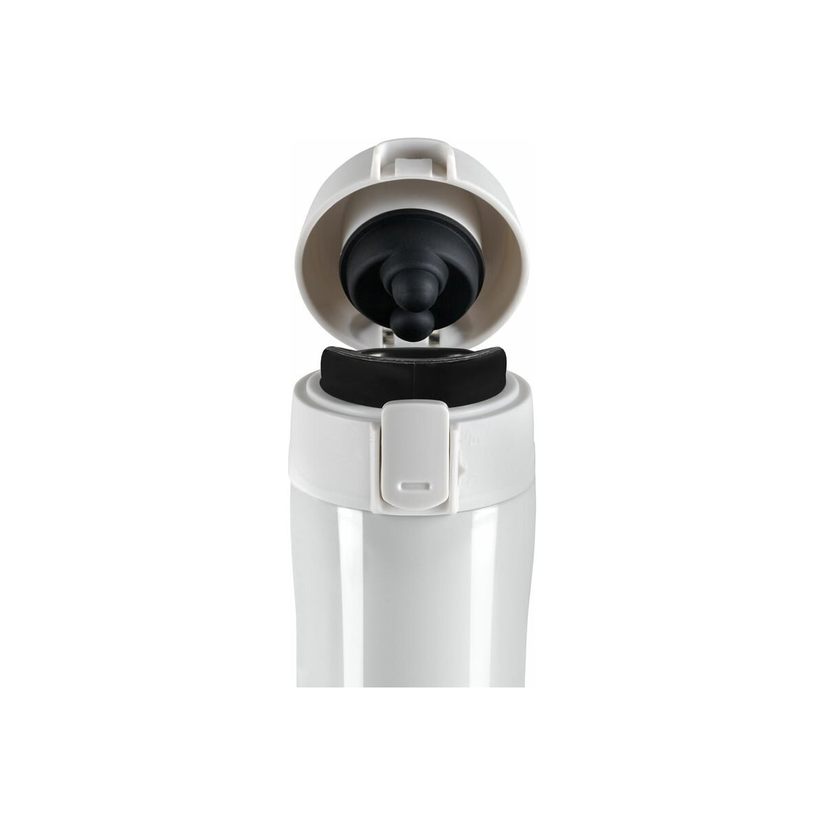 Термокружка обладает оптимальной формой для фиксации в держателе автомобиля, что позволяет использовать ее во время поездок. Термокружка снабжена откидывающейся крышкой с кнопкой, позволяющей с легкостью использовать ее одной рукой. Также, для защиты от непроизвольного нажатия кнопки, кружка имеет специальный защитный замок-предохранитель.