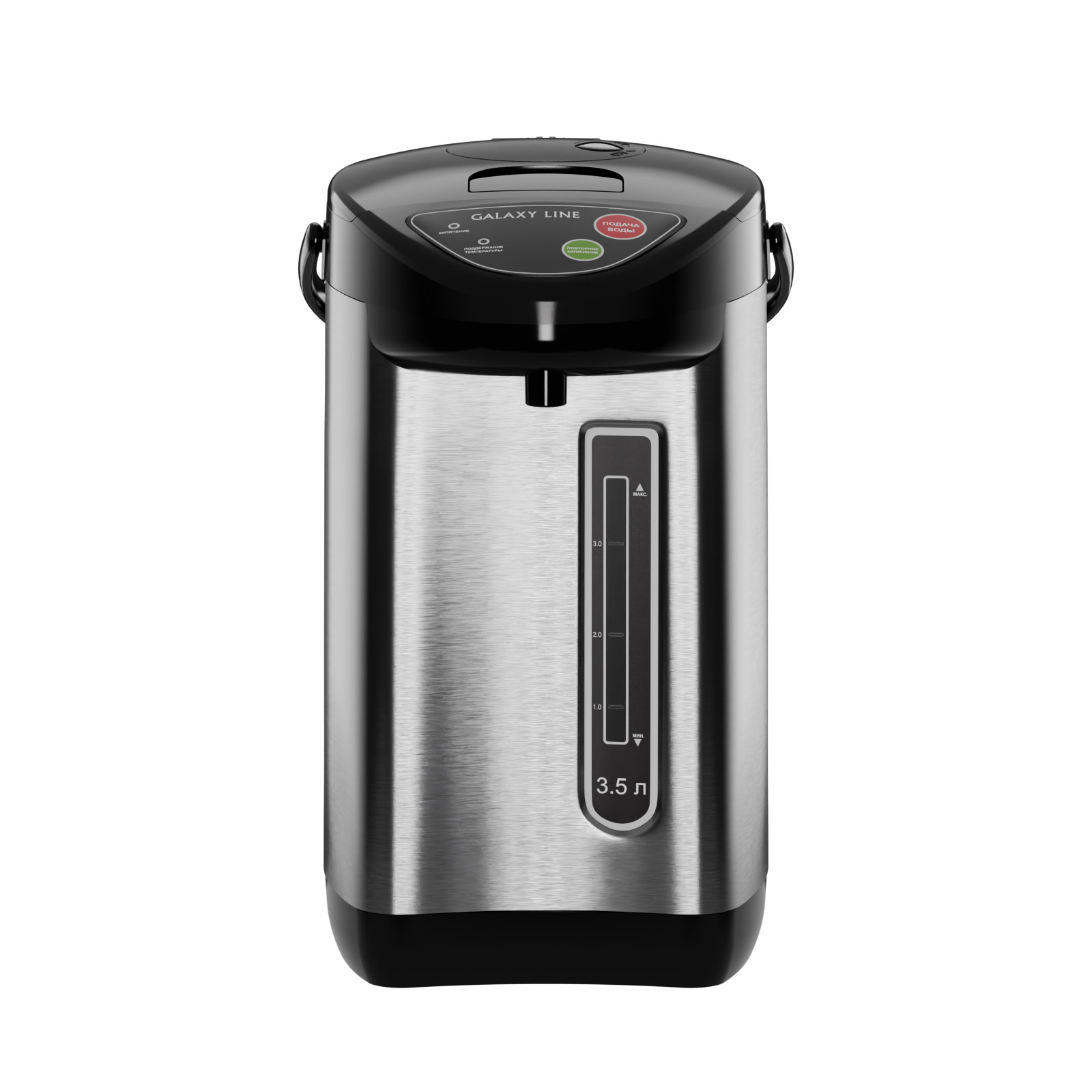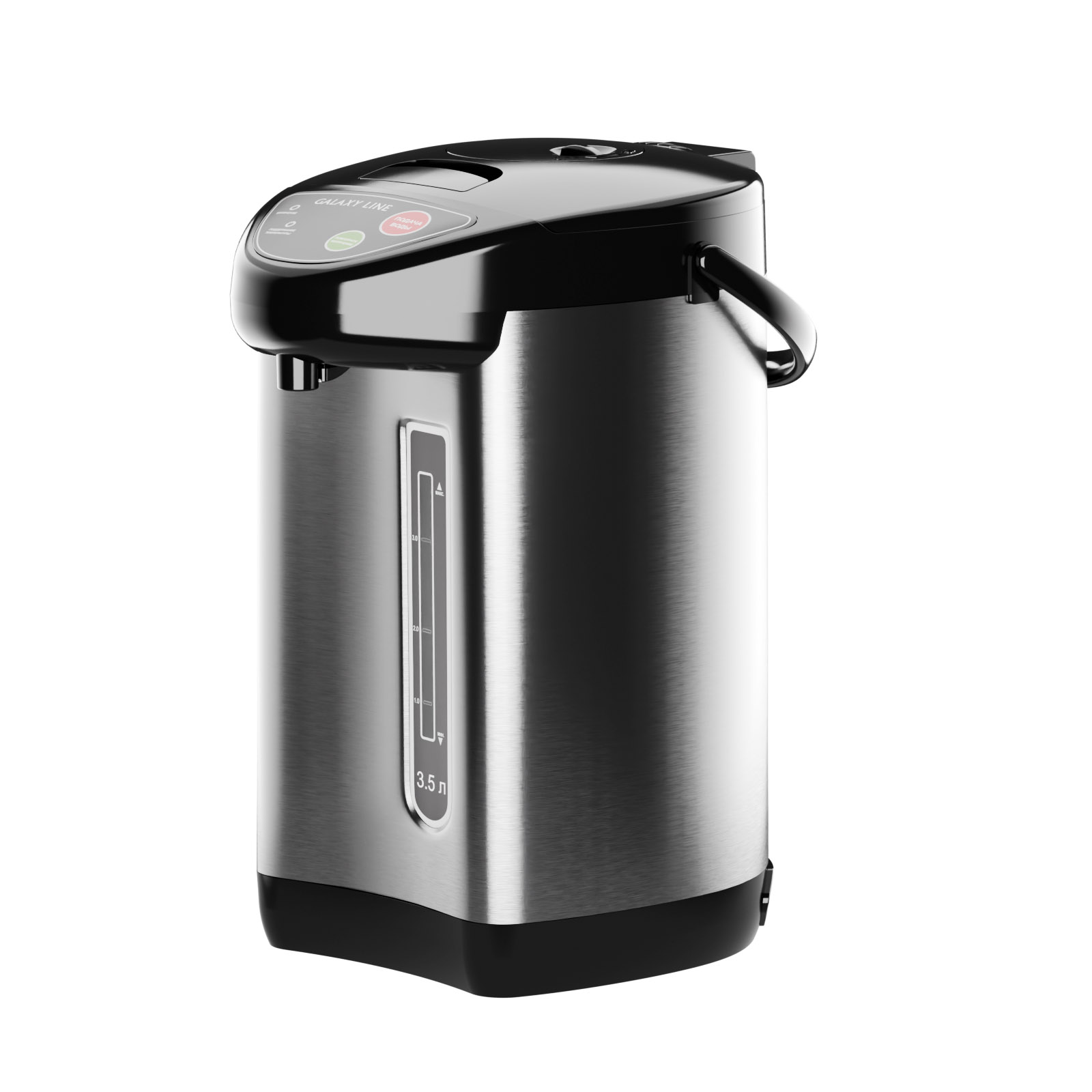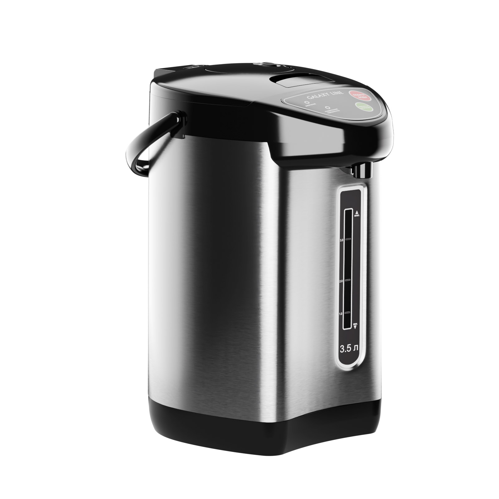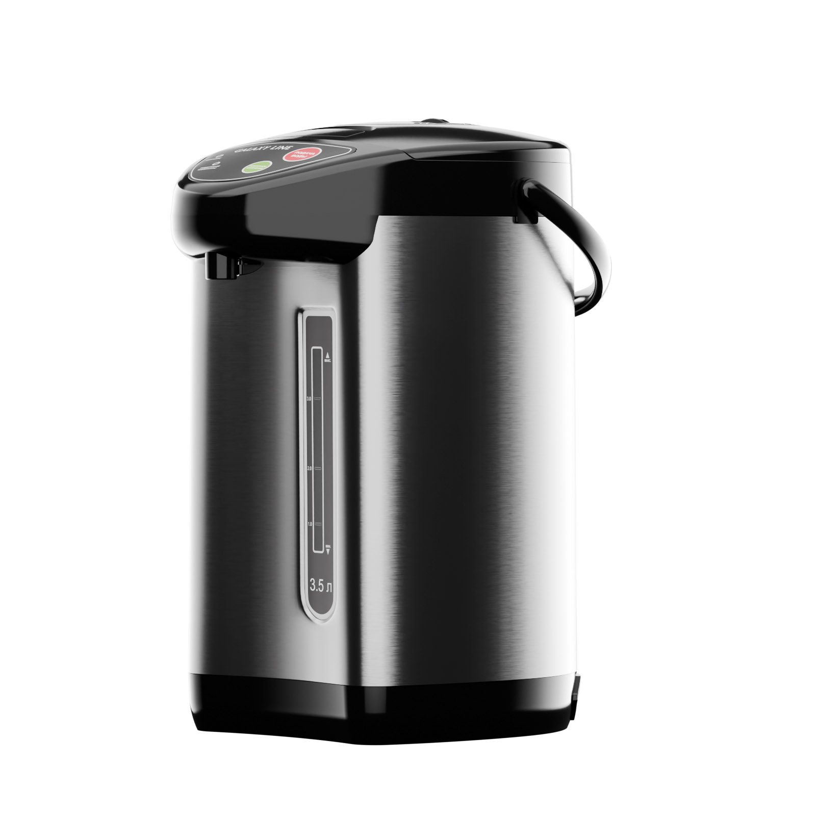 Объём 3,5 литра оптимален для домашнего использования и рабочего пространства: его хватает на несколько чашек подряд, не перегружая кухню габаритами. В режиме кипячения мощность 900 Вт обеспечивает быстрый нагрев, а в режиме поддержания температуры термопот работает экономично, потребляя всего 35 Вт.