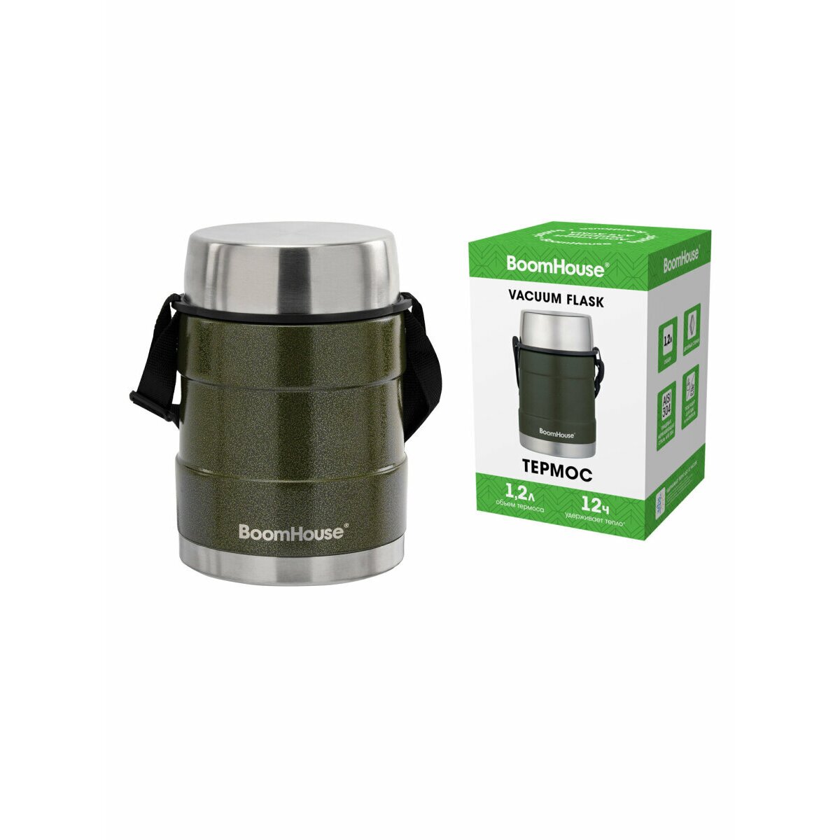 Термос BOOMHOUSE – практичное решение для сохранения температуры еды и напитков до 12 часов! Двойные стенки из нержавеющей стали SUS304 надёжно удерживают тепло, а широкое горло удобно для первых и вторых блюд. Незаменим в поездках, на работе и отдыхе.