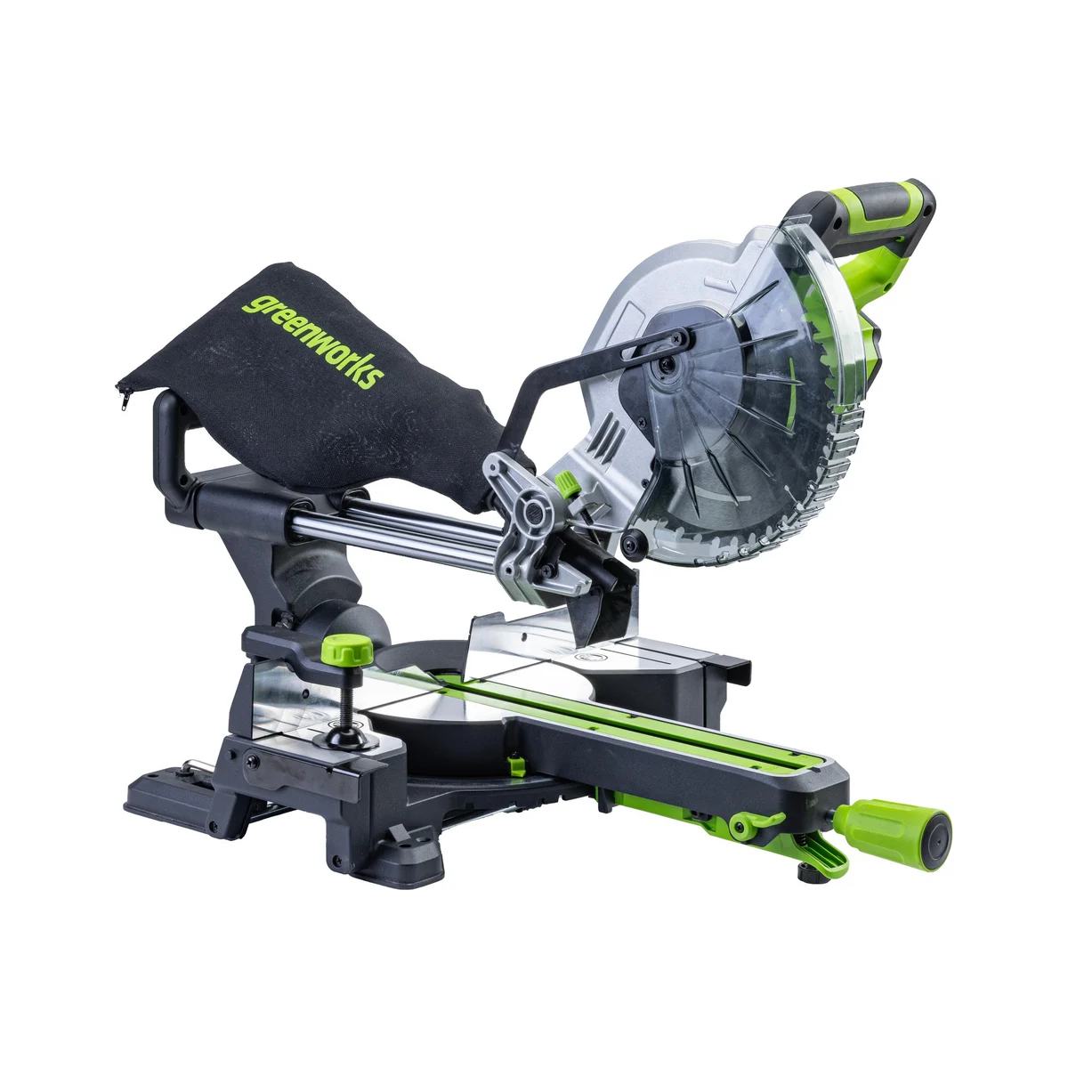 Мобильная производительная аккумуляторная торцовочная пила Greenworks GD24MS216 с функцией протяжки – максимально удобная в эксплуатации.