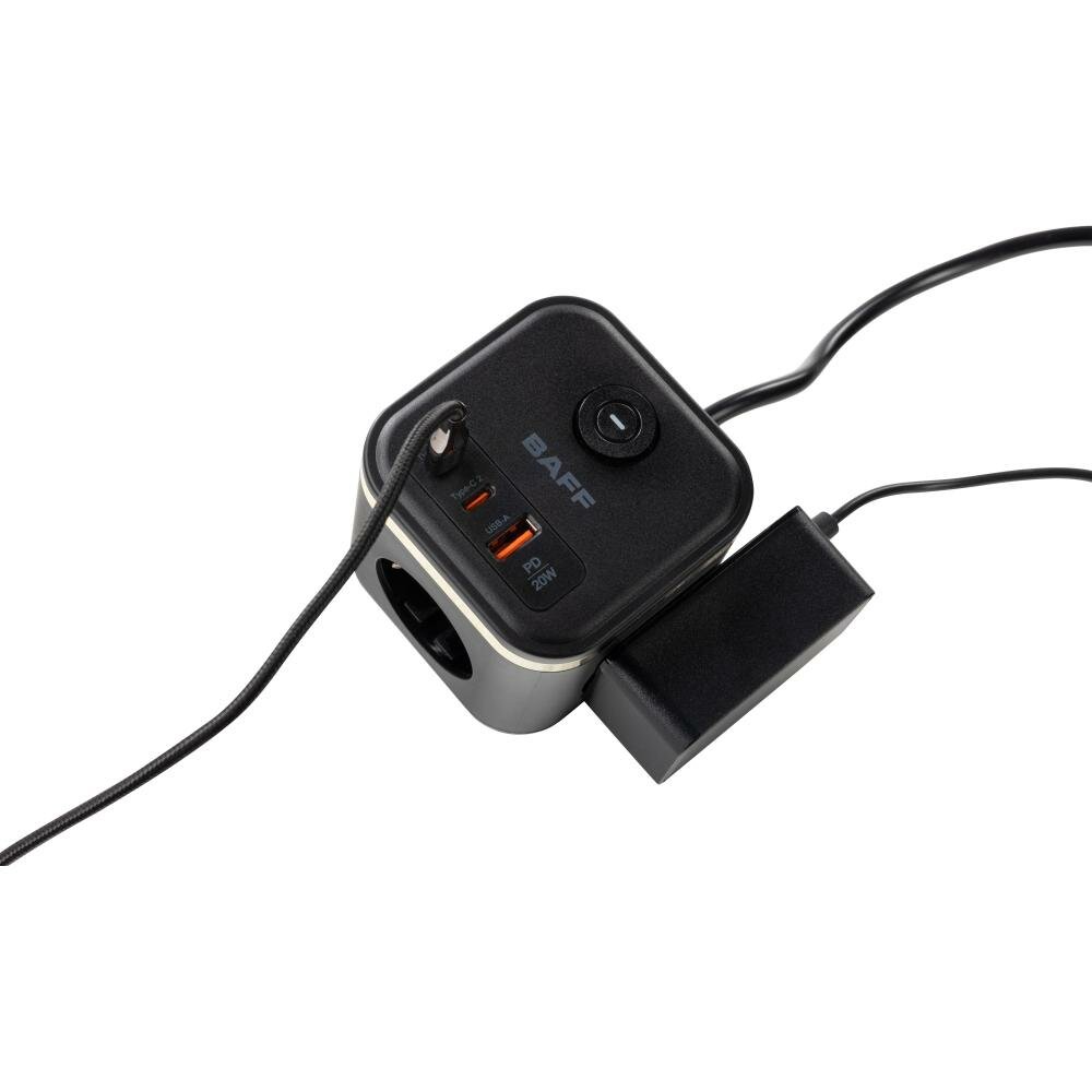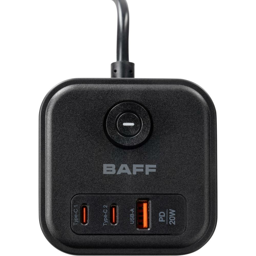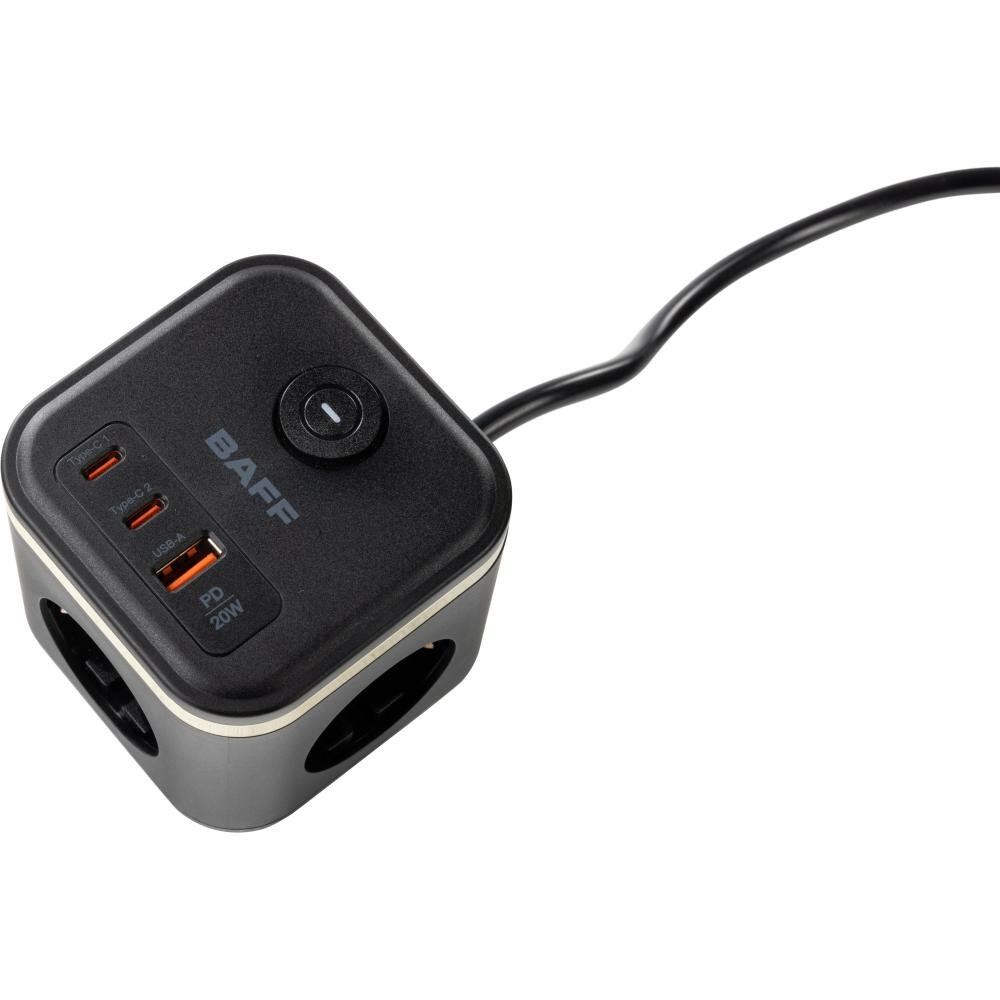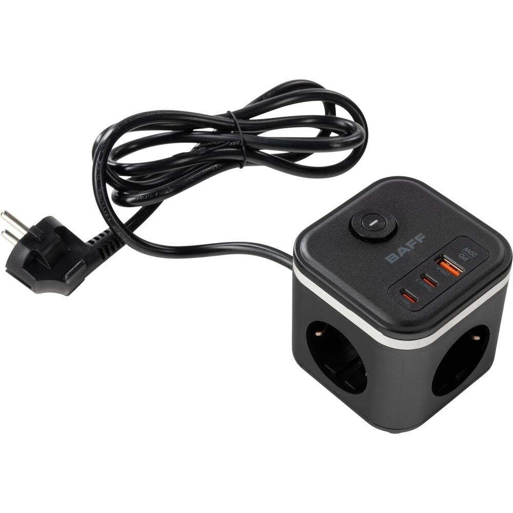 Удлинитель BAFF Q322, 3 розетки АС, 2 порта Type-C, порт USB-A,