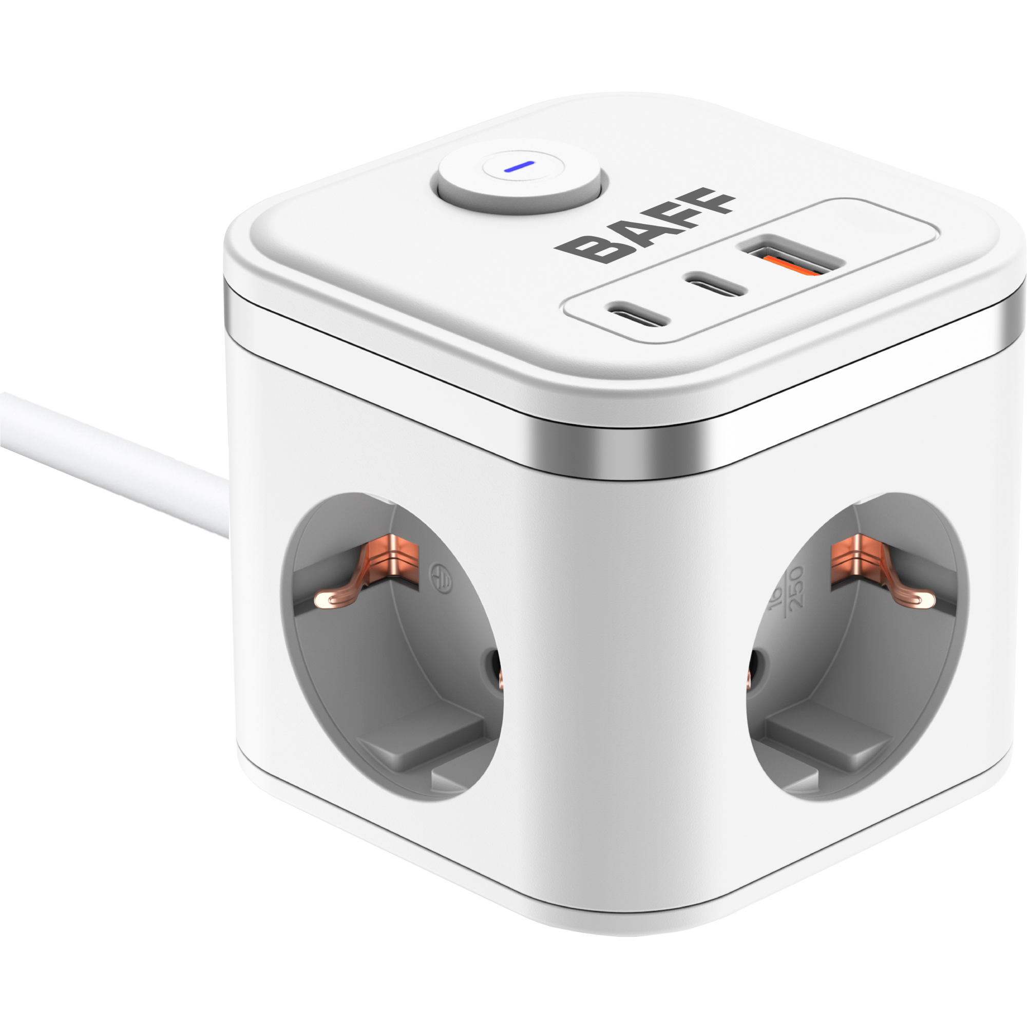 Удлинитель BAFF Q322, 3 розетки АС, 2 порта Type-C, порт USB-A