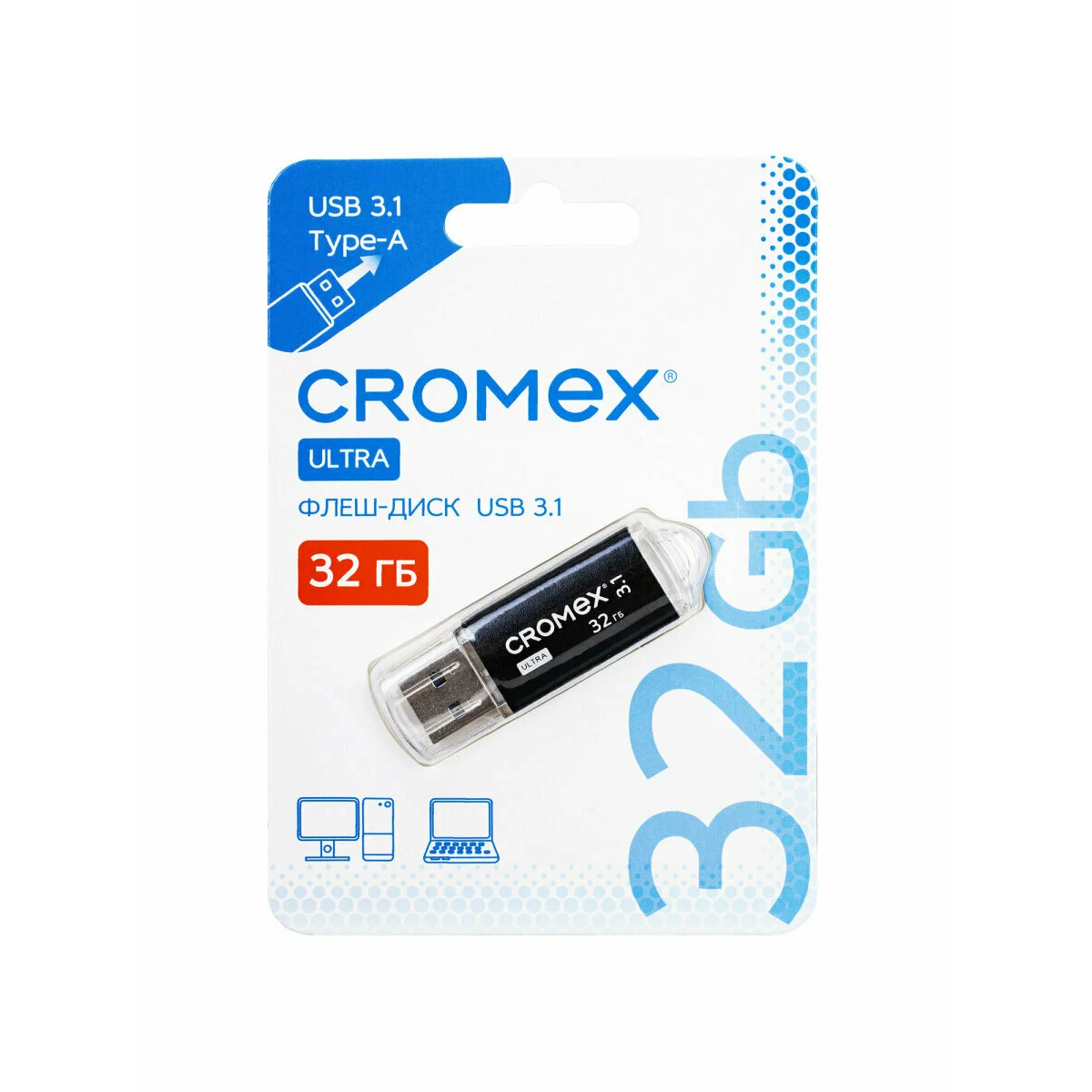 USB-флешка CROMEX 514163 Ultra 32Gb USB 3.1, металлический корпус, черный