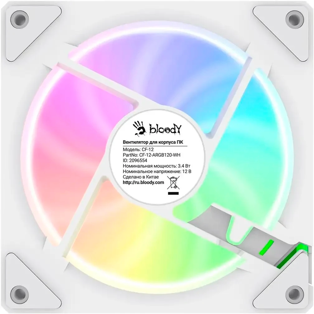 Вентилятор BLOODY CF-12, LCD (cf-12-argb120-wh) 120мм, 4-pin, 1800об/мин, 11 - 32 дБ, ARGB, белый, Ret