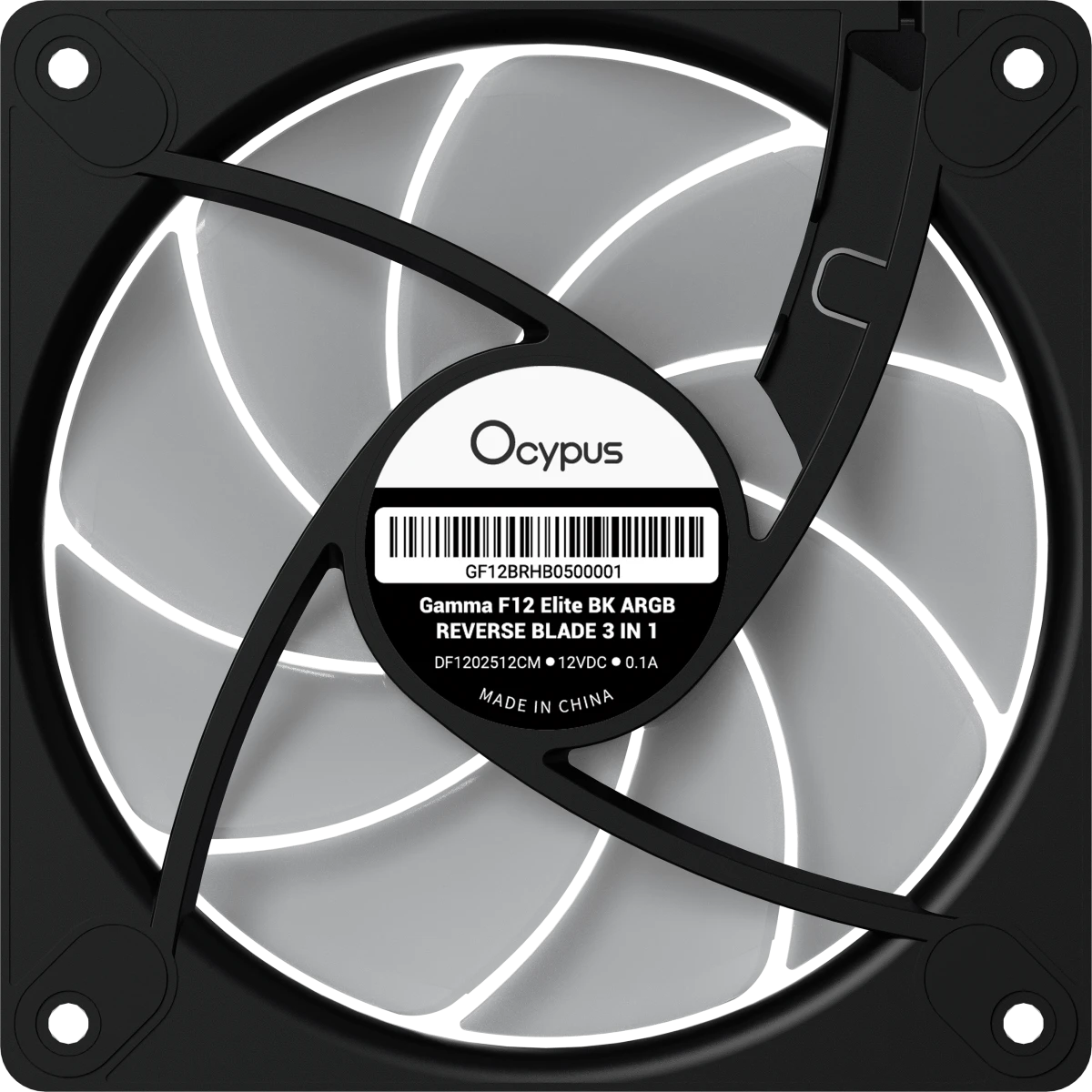 Вентилятор Ocypus Gamma F12 Elite BK ARGB Reverse Blade 3 in 1, 120x120x25mm, 4-Pin PWM, 600-1800 RPM, 26 DBA Max, Hydro Bearing