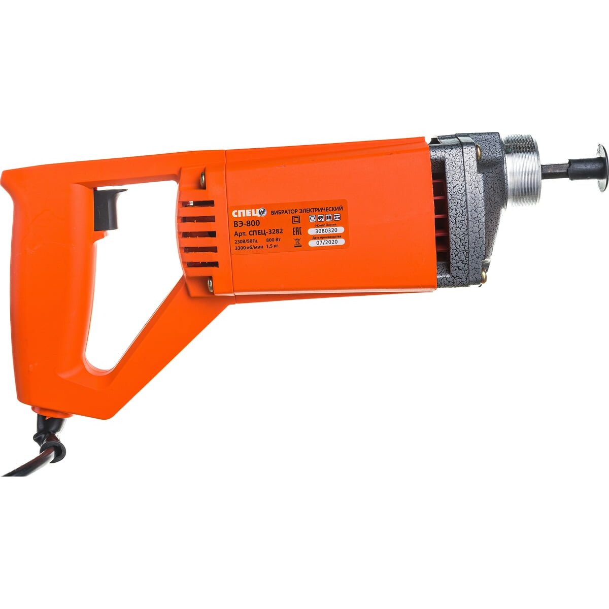 Электрический вибратор Спец ВЭ-800 СПЕЦ-3282 используется на строительной площадке для быстрого и полного удаления воздушных пузырьков из бетонной смеси. Прибор незаменим при заливке фундаментов, стен, колонн.
