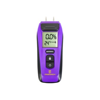 Датчик влажности Ermenrich Wett MW20, он же влагомер, используется для измерения влажности строительных материалов, в том числе цементного раствора, кирпича, штукатурки, древесины и многого другого. Для каждого материала используется свой режим работы, переключение осуществляется кнопкой на корпусе. Измеритель влажности пригодится на любом производстве, работающем с древесиной, а также будет незаменим в столярной мастерской, при возведении загородного дома или при ремонте в квартире.