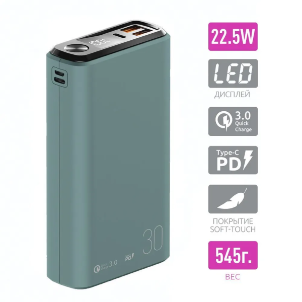 Внешний аккумулятор OLMIO QS-30 темно-зеленый