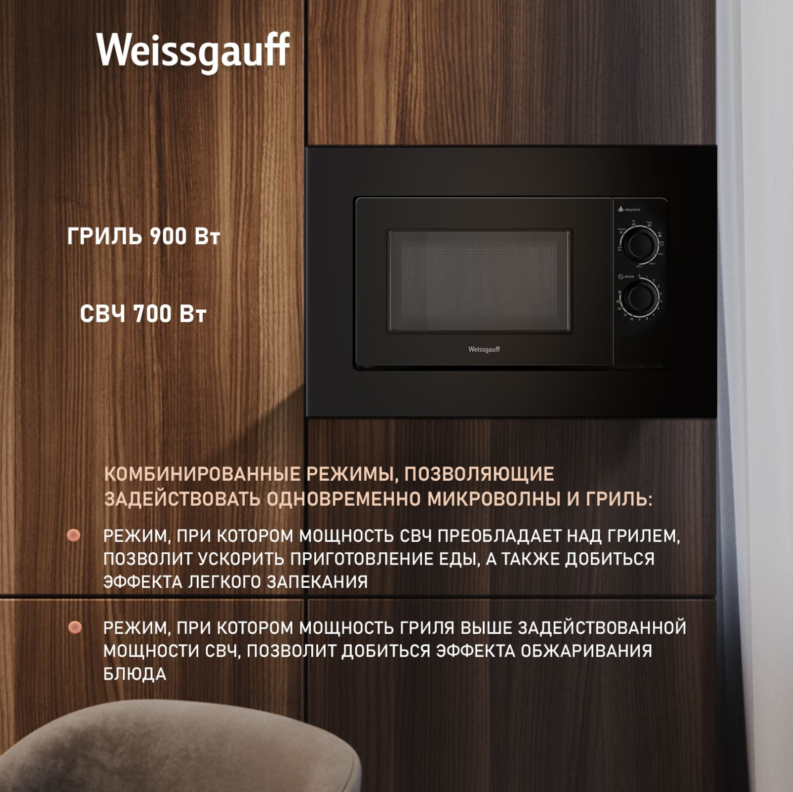 Встраиваемая микроволновая печь Weissgauff HMT-2016 BGL Grill