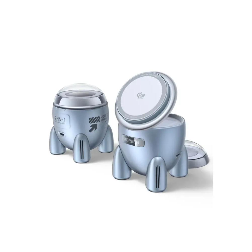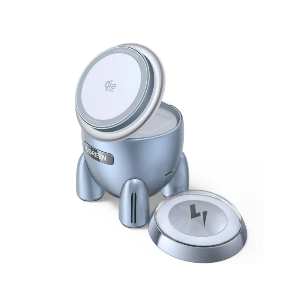 Зарядное устройство UGREEN W713 (65300) UNO 2-in-1 Magnetic 25W Wireless Qi2 Charger серебристо-голубой
