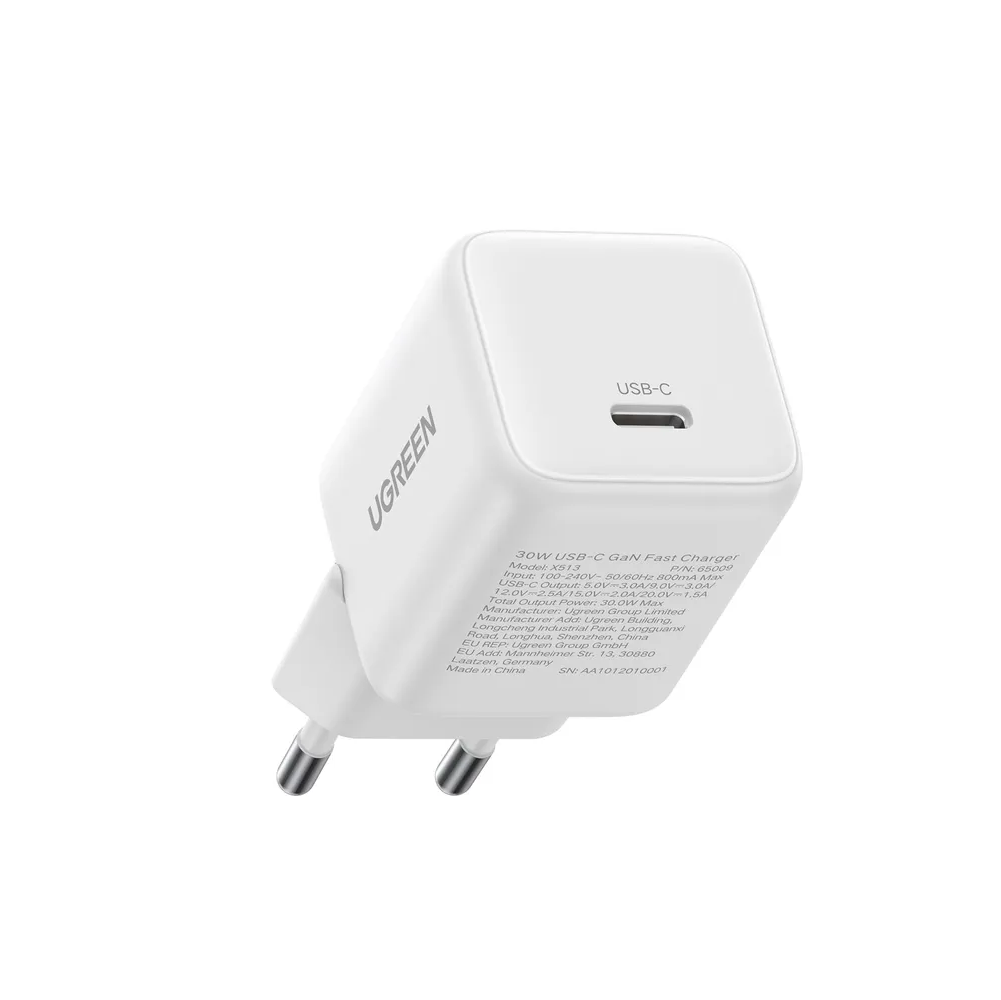 Зарядное утройство UGREEN X513 (65013) 30W USB-C GaN Fast Charger With USB-C-USB-C Cable 1m EU White